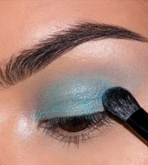 طبّقي بعدها ظلال العيون التركواز اللماعة إبتداءً من زاوية العين الداخلية وصولاً حتى نصف الجفن المتحرك.